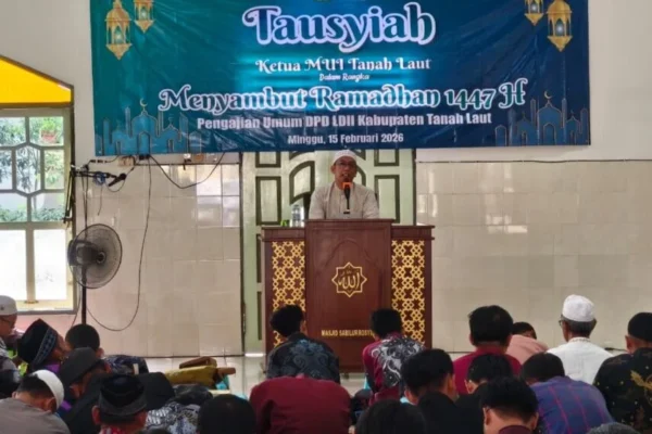 Tanah Laut (15/2) – Ketua Majelis Ulama Indonesia (MUI) Kabupaten Tanah Laut (Tala), KH Ahmad Syarifuddin Noor, menyampaikan tausyiah dalam pengajian umum Dewan Pimpinan Daerah (DPD) Lembaga Dakwah Islam Indonesia (LDII) Kabupaten Tanah Laut, Minggu (15/2/2026), di Masjid Sabilar Rosyad, Kelurahan Angsau, Pelaihari. Kegiatan tersebut dihadiri ratusan warga LDII dari berbagai wilayah di Tala. Dalam…